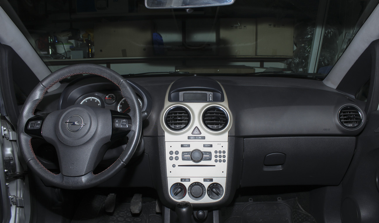 From April 2015, since I own this car, I wanted to have a better in-car-entertainment (ICE) system. My Opel Corsa D from 2009 started life as one of the most-basic models, called Essentia in Europe or Life in UK. From factory it comes with basic plastic steering wheel with no radio controls, BID screen, CD30 (no MP3) and only 4 front speakers in front. This is actual photo of my Corsa D, with leather steering wheel with radio controls I installed week ago. I love it. Everything else on this photo is stock.